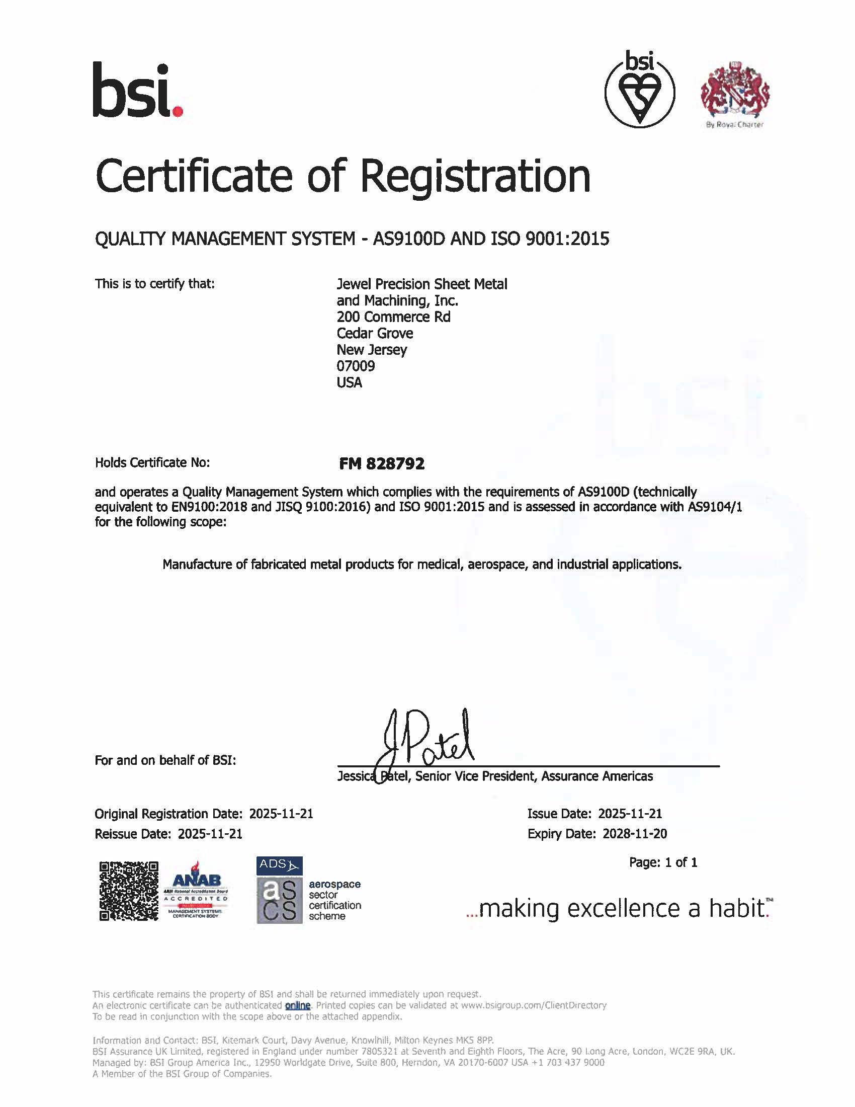ISO 13485 Certification & ISO 9001:2015 (AS9100D)